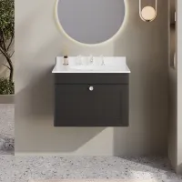 Kivo 600mm Single Drawer Wall Hung Unit with a Grey Marble Top