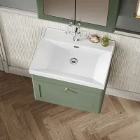 Nuie Classique 600mm Satin Green Wall Hung 1-Drawer Vanity with Basin, 1 Tap Hole & Soft Close Drawer