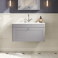 Larck 800mm Single Drawer Wall Hung Unit with Contemporary Fireclay Basin - 3 Tap Holes