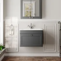Larck 600mm Single Drawer Wall Hung Unit with Traditional Fireclay Basin - 1 Tap Hole