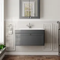 Classique Wall Hung 1 Drawer Vanity Basin Unit & 1 Tap Hole Stone Basin, 800mm