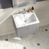 Lille 600mm Wall Hung Single Drawer Vanity with Marble Worktop Basin