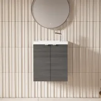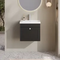 Nuie Arno 500mm Charcoal Black Wall Hung 2-Door Vanity & Thin-Edge Basin With Soft Close Doors