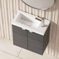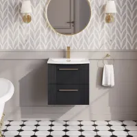 Nuie 600mm Charcoal Black Wall Hung 2-Door Vanity Unit With Thin-Edge Basin & Soft Close Doors