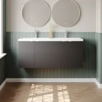 Nuie 1200mm Satin Green Wall Hung 4-Door Double Basin Vanity Unit Rigid With Handles