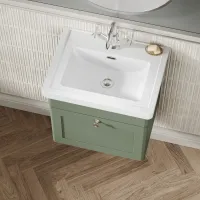 Hudson Reed Fluted 500mm Satin Green 2-Drawer Wall Hung Vanity Unit With Basin