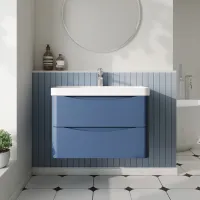 Nuie 600mm Midnight Blue Wall Hung 2-Door Vanity Unit with Basin & Soft Close Doors