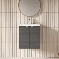 Hudson Reed Fusion 505mm Anthracite Woodgrain Wall Hung 2 Door Vanity Unit With Basin