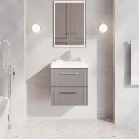 Nuie Deco 600mm Satin Grey Part Fluted Wall Hung 2-Drawer Vanity Unit With Basin
