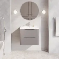 Nuie Lunar 600mm Satin Grey Wall Hung 2 Drawer Vanity Unit With Ceramic Basin