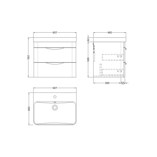 nuie Parade Wall Hung 2 Drawer Vanity Basin Unit & Thin Edge Ceramic Basin, 600mm - Satin Green