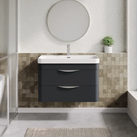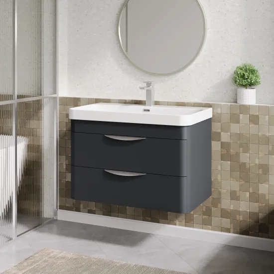 Nuie 800mm Soft Black Wall Hung 2 Drawer Vanity Unit with Basin