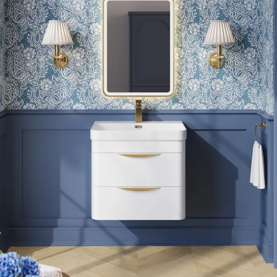 nuie Parade Wall Hung 2 Drawer Vanity Unit with Thin Edge Ceramic Basin 600mm - Gloss White