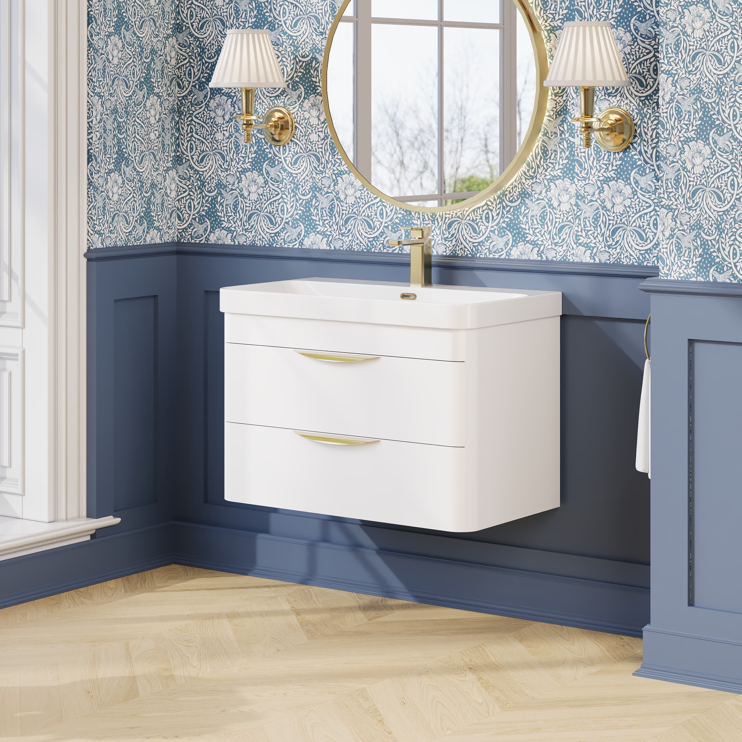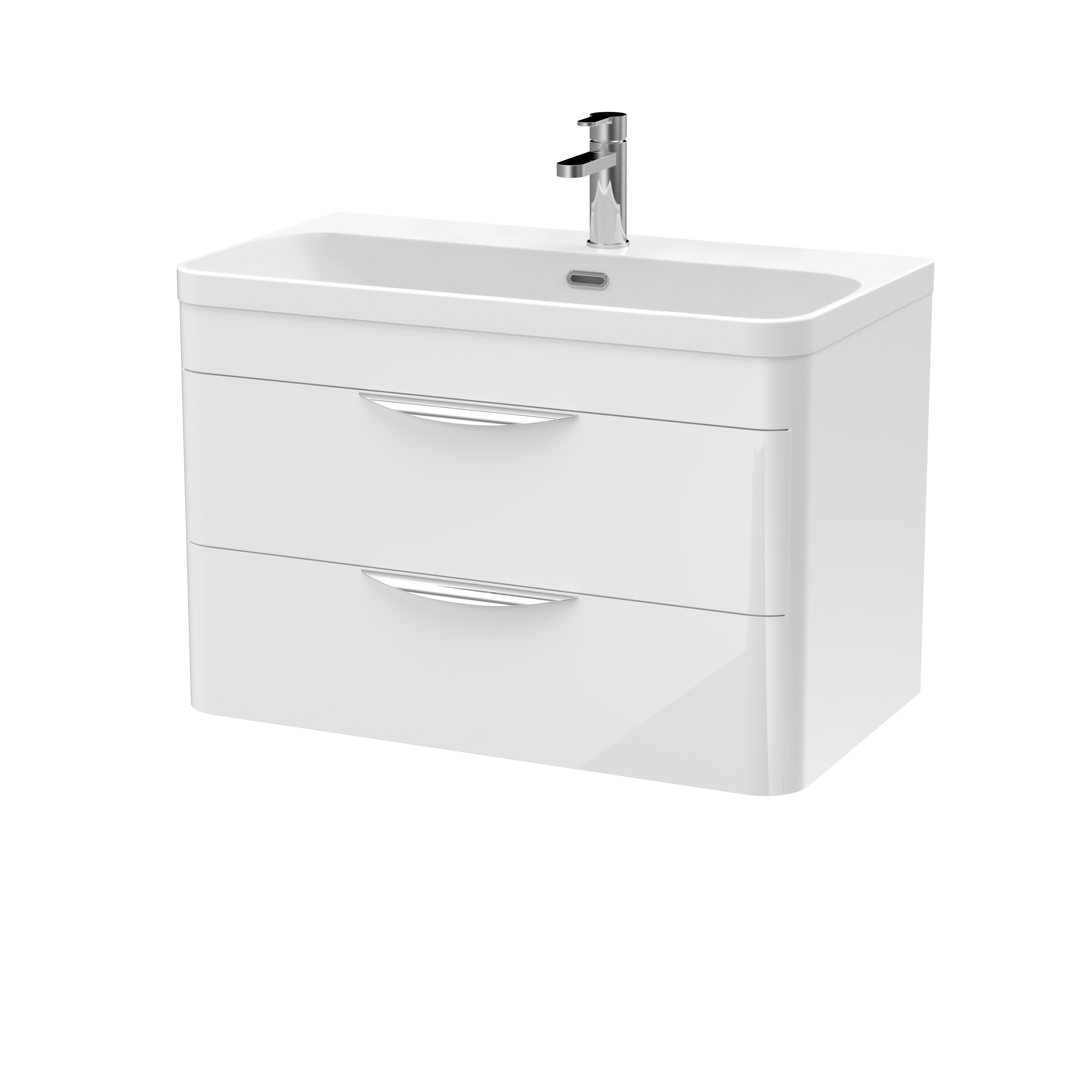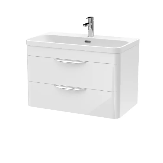 nuie Parade Wall Hung 2 Drawer Vanity Unit with Thin Edge Ceramic Basin 800mm - Gloss White