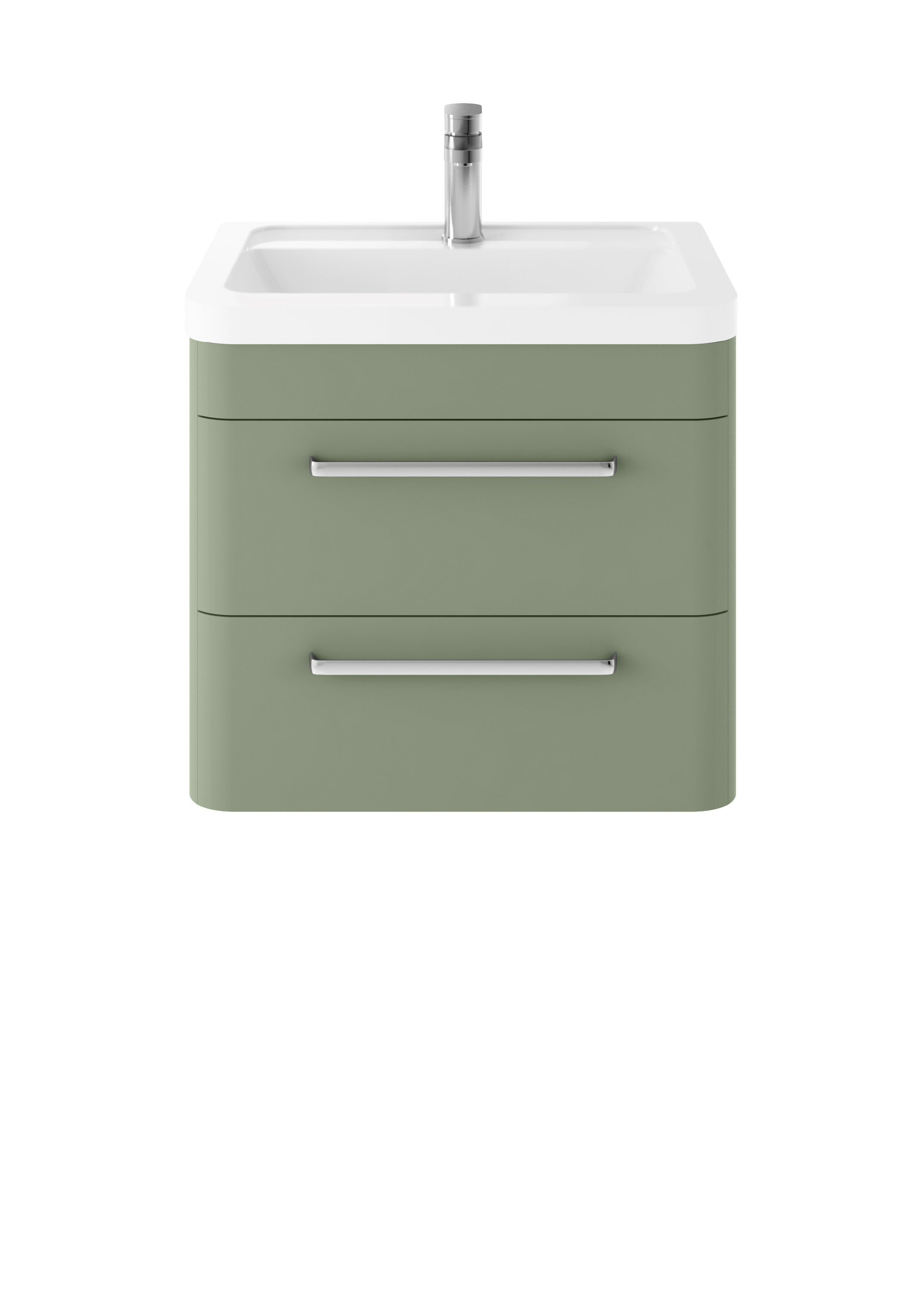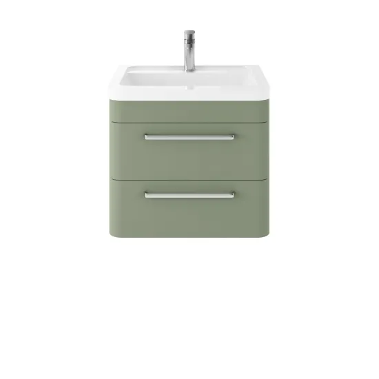 Hudson Reed Solar 600mm Wall Hung 2-Drawer Unit and Ceramic 1 Tap Hole Basin - Fern Green