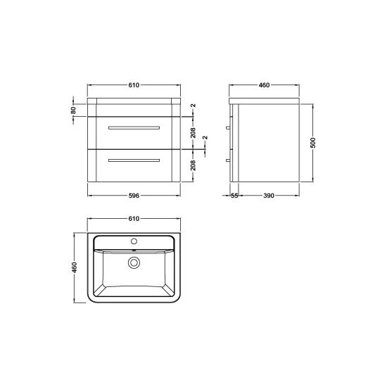 Hudson Reed Solar 600mm Wall Hung 2 Drawer Vanity Unit with Ceramic Basin