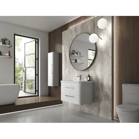 Hudson Reed Solar Wall Hung 2 Drawer Vanity Unit with Polymarble Basin 800mm - Pure White