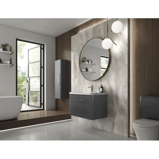 Hudson Reed Solar Wall Hung 2 Drawer Vanity Unit with Polymarble Basin 800mm - Cool Grey