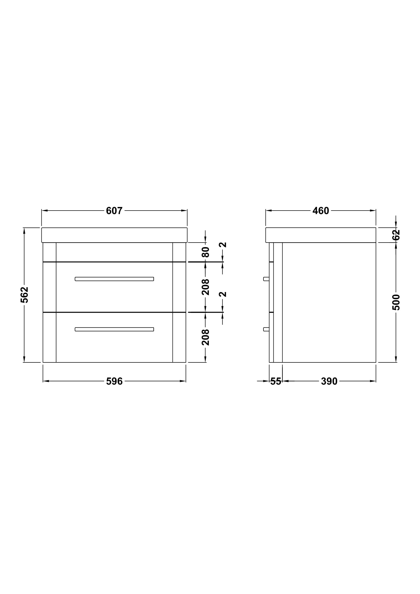 Hudson Reed Solar 600mm Wall Hung 2 Drawer Vanity Unit With Ceramic Basin