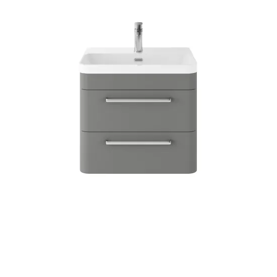 Hudson Reed Solar Wall Hung 2 Drawer Vanity Unit with Thin Edge Ceramic Basin 600mm - Cool Grey