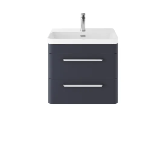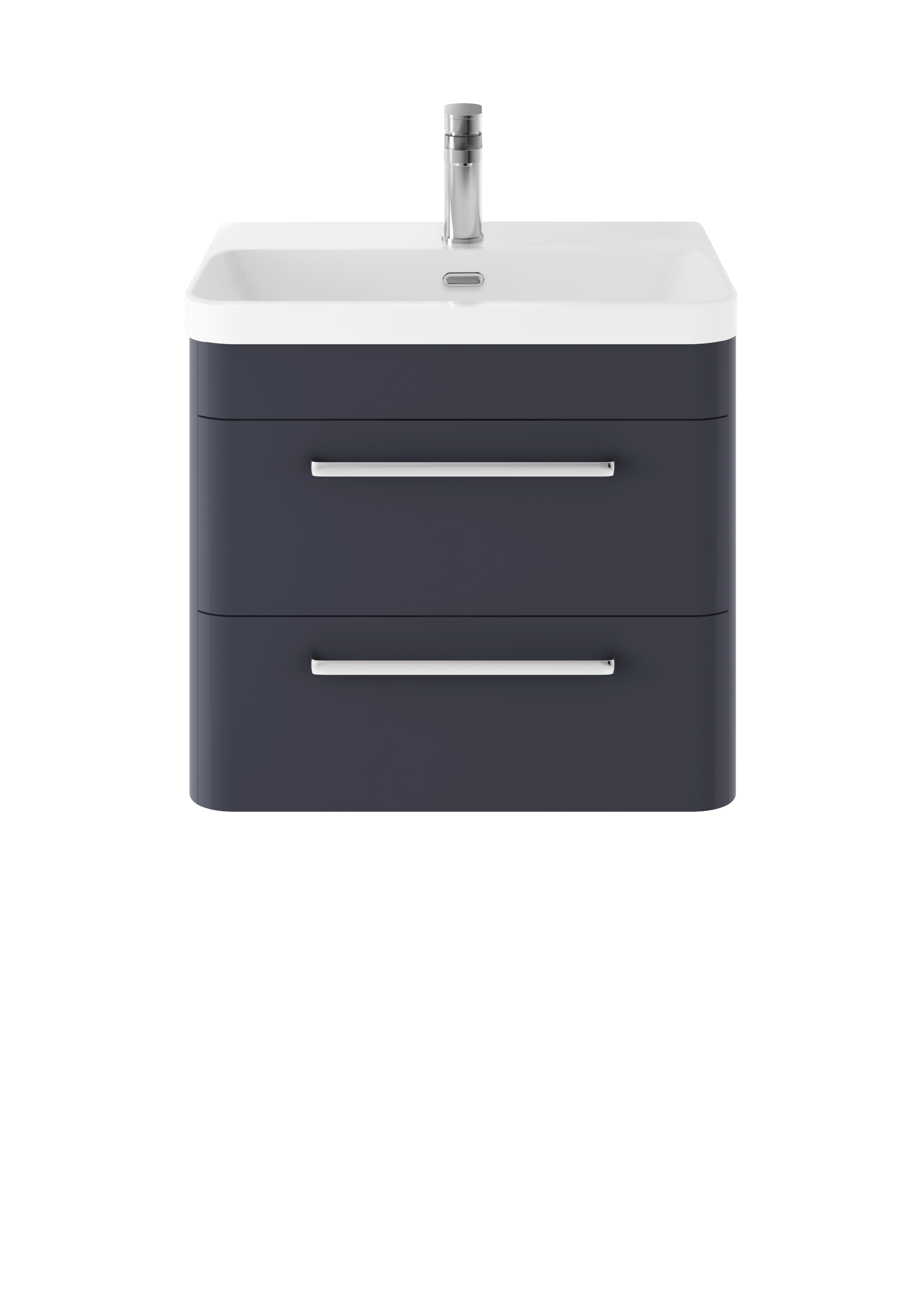 Hudson Reed Solar Wall Hung 2 Drawer Vanity Unit with Thin Edge Ceramic Basin 600mm - Indigo Blue