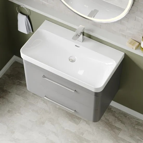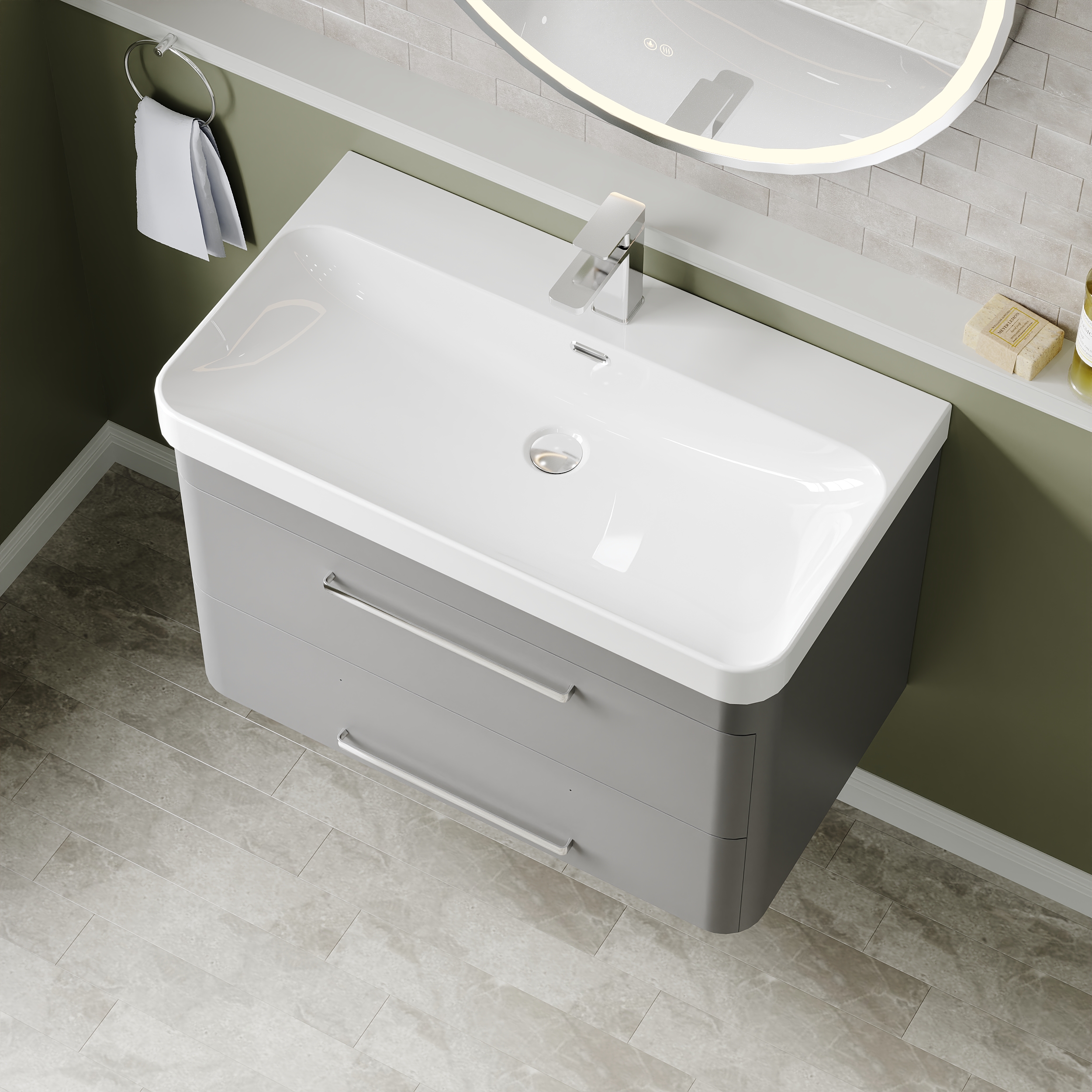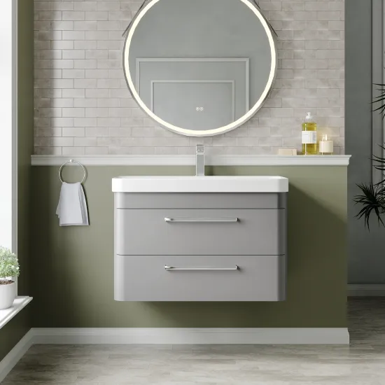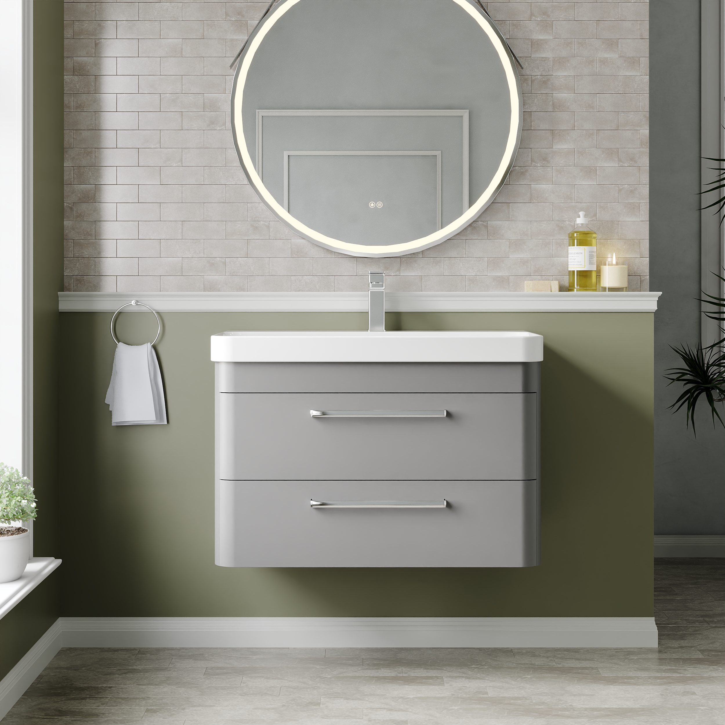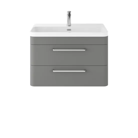 Hudson Reed Solar Wall Hung 2 Drawer Vanity Unit with Thin Edge Ceramic Basin 800mm - Cool Grey
