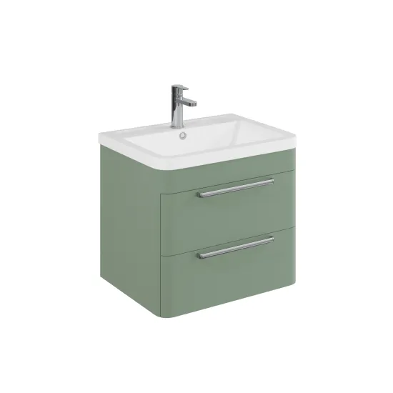 Synergy Gero 600mm 2 Drawer Wall Hung Vanity Unit - Satin Green