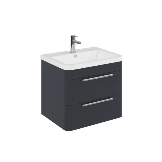 Synergy Gero 600mm Soft Black 2 Drawer Wall Hung Unit With Handles