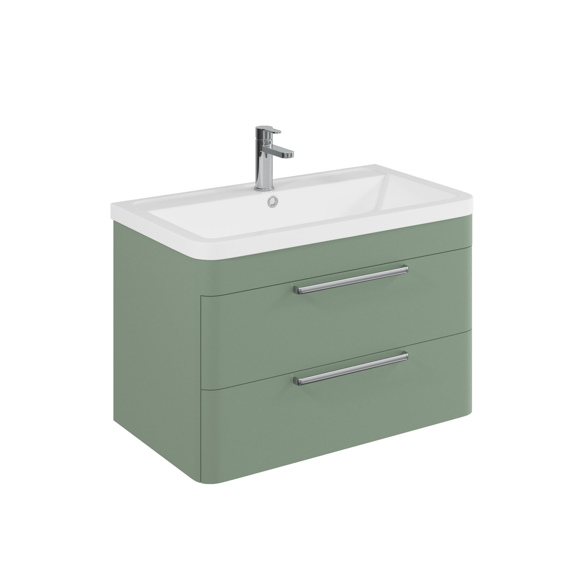 Synergy Gero 800mm Satin Green 2 Drawer Wall Hung Unit With Handles
