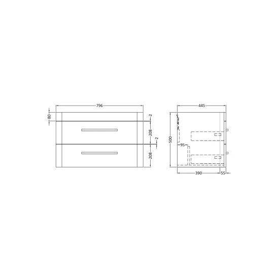 Synergy Gero 800mm 2 Drawer Wall Hung With Handles - Pebble Grey