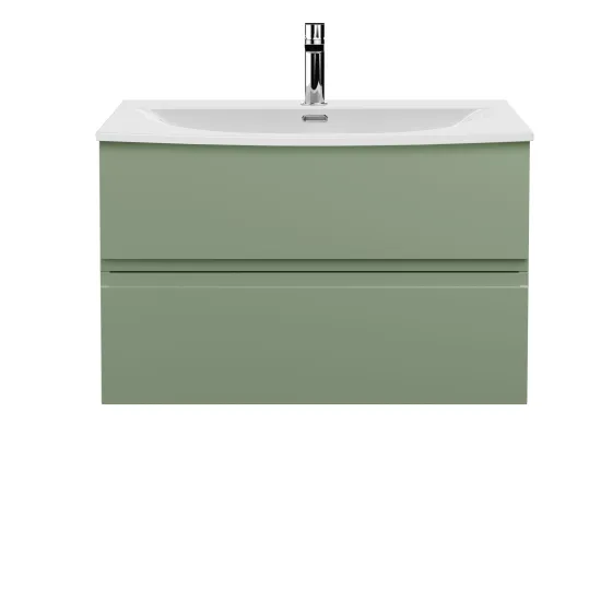 Hudson Reed Urban 800mm Wall Hung 2-Drawer Unit and Curved Basin 1 Tap Hole - Satin Green