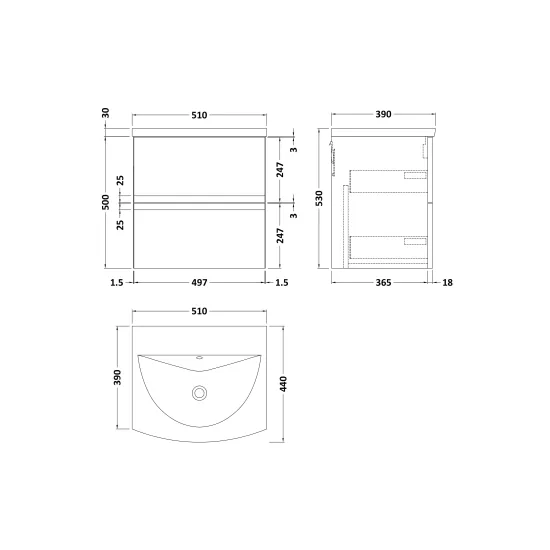 Hudson Reed Urban 500mm Wall Hung 2 Drawer Vanity Unit with Mid-Edge Basin