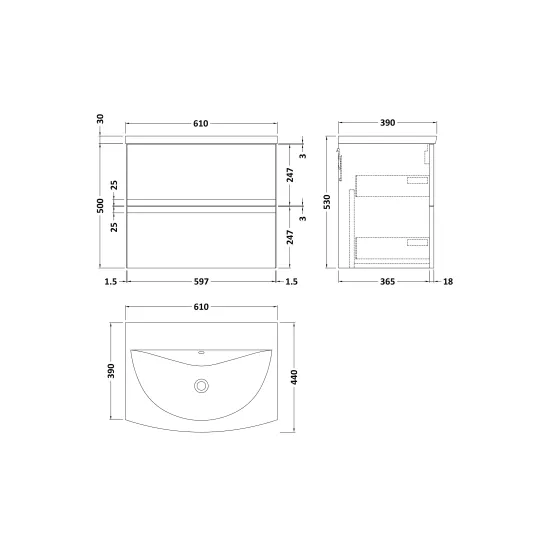 Hudson Reed Urban 600mm Wall Hung 2 Drawer Vanity Unit With Basin