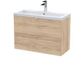 Hudson Reed Fusion 800mm Wall Hung 2-Drawer Unit & Basin - Bleached Oak