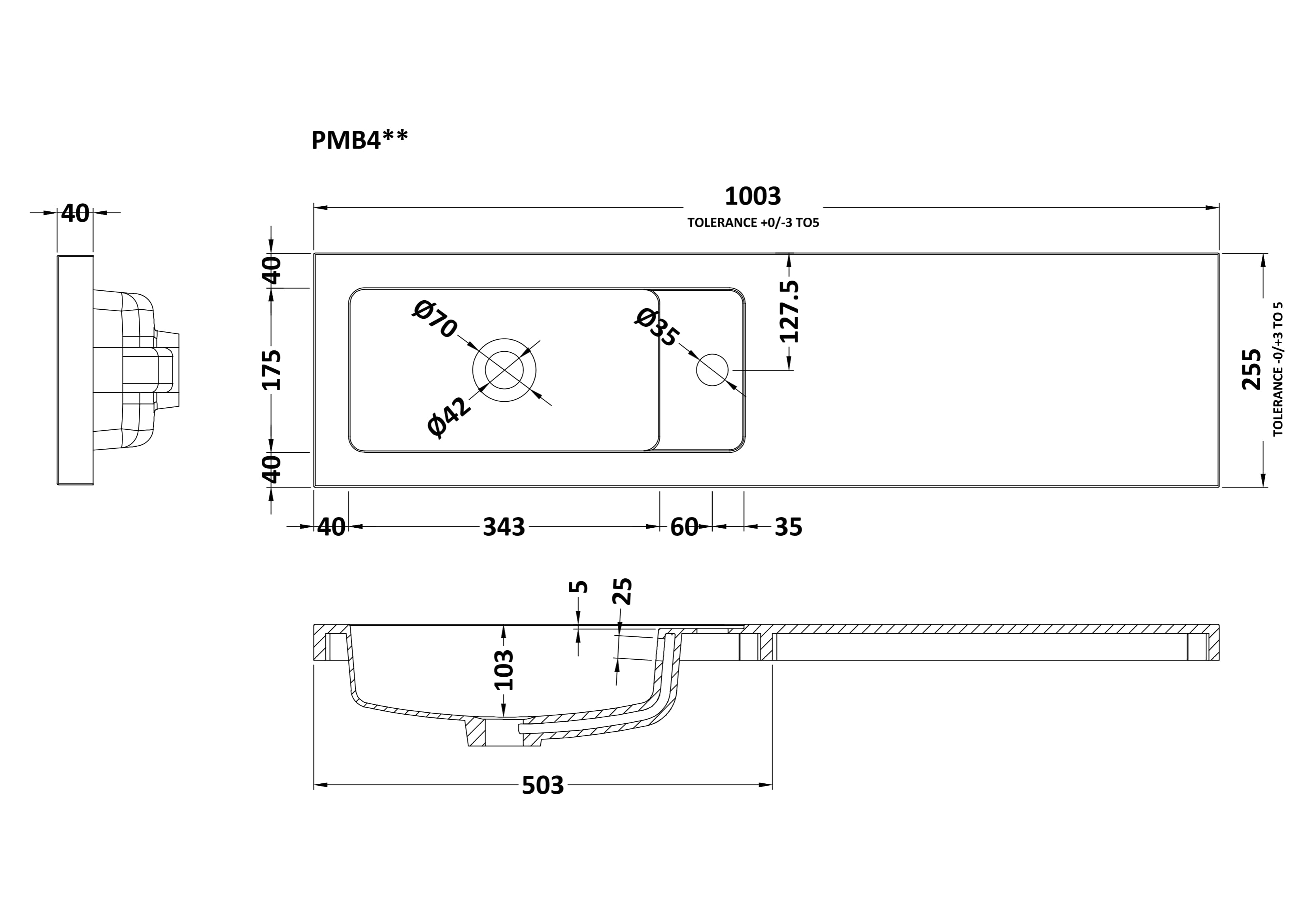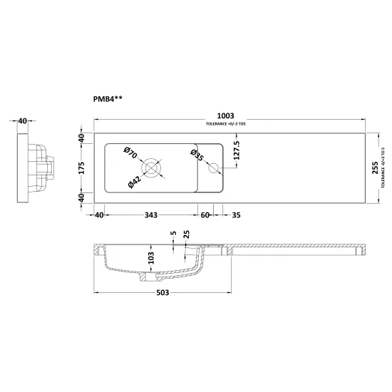 Fusion Straight Polymarble Basin - Compact 1000mm