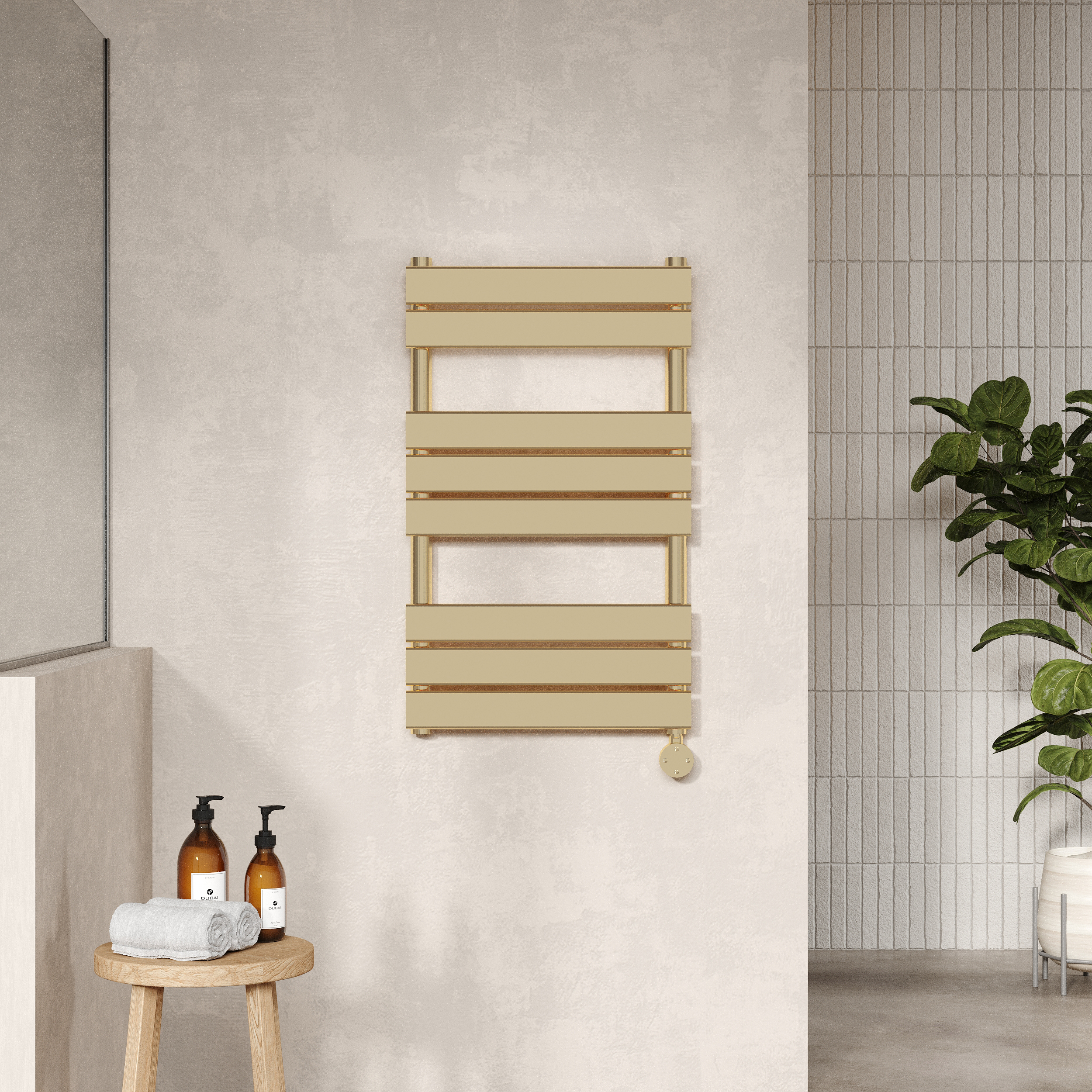 Hudson Reed Electric Square Flat Towel Rail with 8 Bars, 840mm x 500mm - Brushed Brass