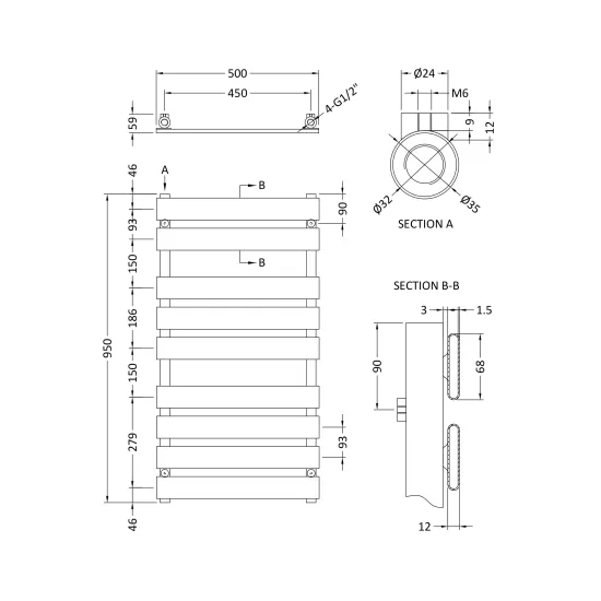 We recoend pipework is not installed until receipt of radiator or heated towel rail