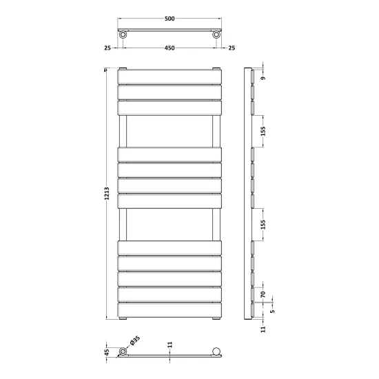Piazza Square Flat Towel Radiator 840mm x 500mm