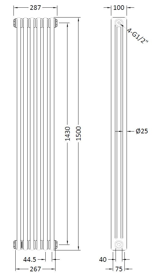Synergy Vital 1500mm x 287mm White Vertical Triple Column Traditional Radiator