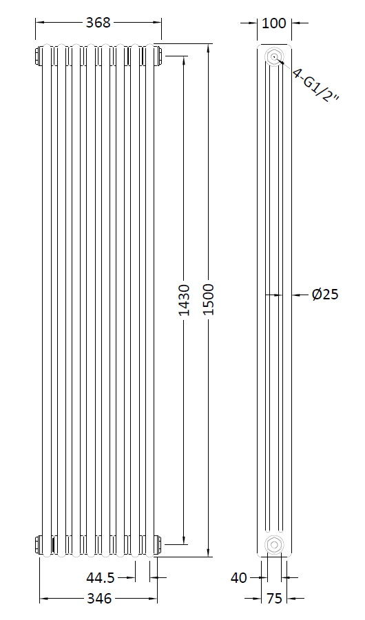 Synergy Vital 1500mm x 368mm White Vertical Triple Column Traditional Radiator
