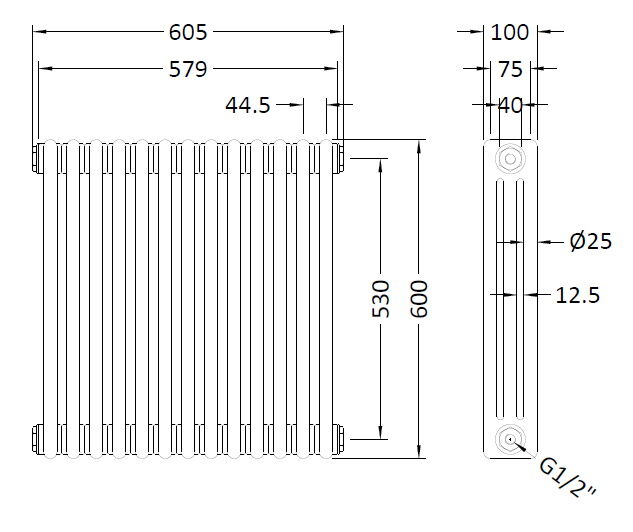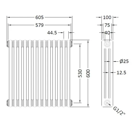 Synergy Vital Triple Column Traditional Radiator 600 x 605mm - High Gloss White