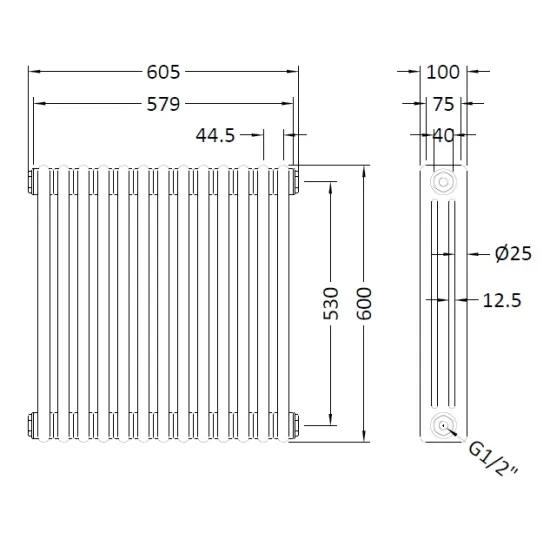 Vital Triple Column Traditional Radiator 600 x 605mm - High Gloss White