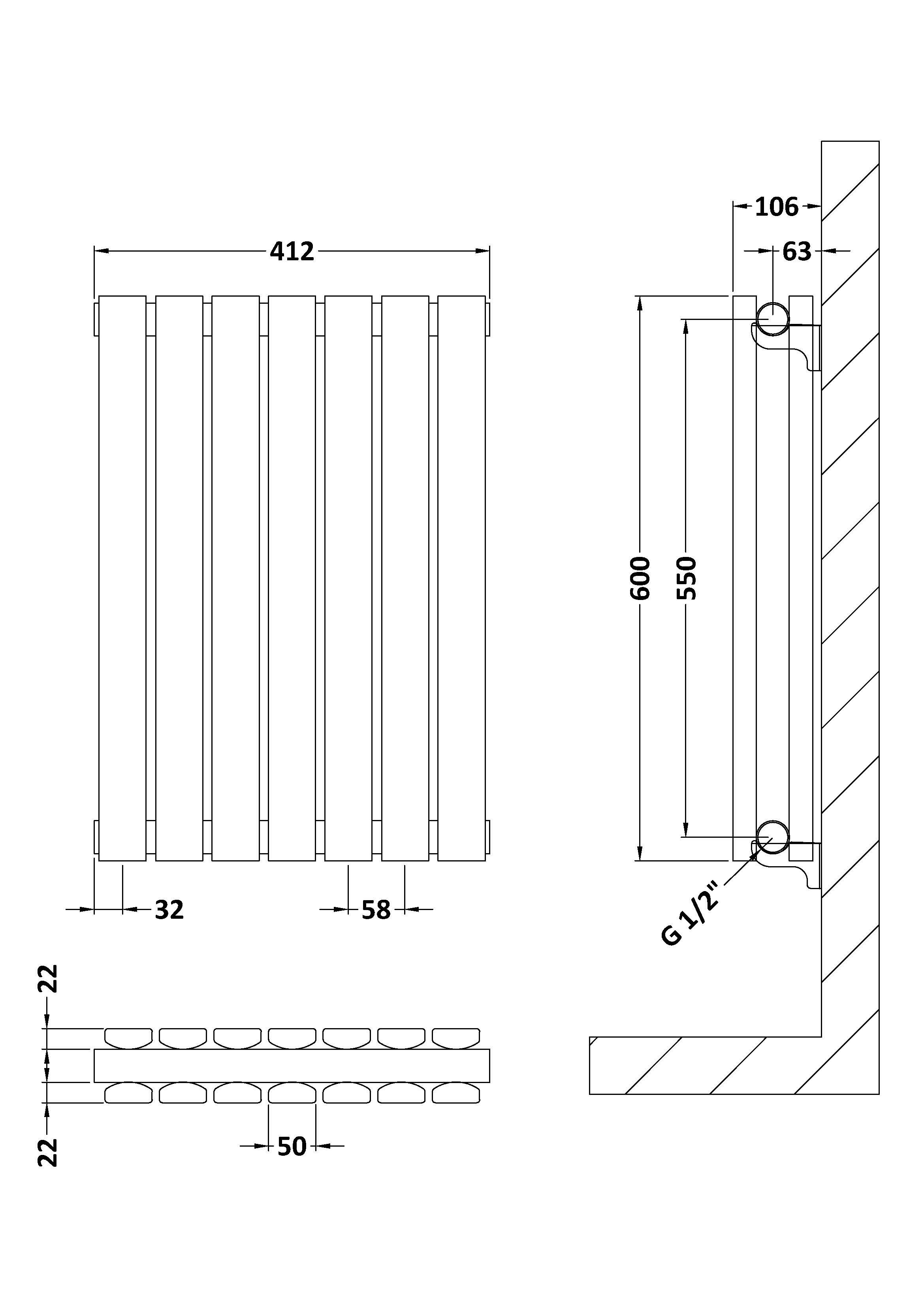 • All tappings are 1/2 British Standard Pipe and we recommend that pipework not be installed until you receive the radiator or heated towel.