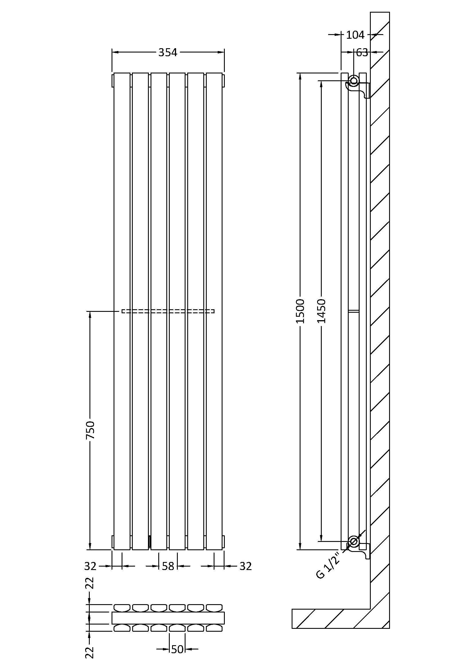 • All tappings are 1/2 British Standard Pipe and we recommend that pipework not be installed until you receive the radiator or heated towel.