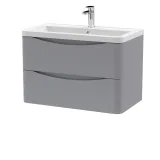 Nuie Lunar 800mm Satin Grey Wall Hung 2 Drawer Vanity Unit with Ceramic Basin