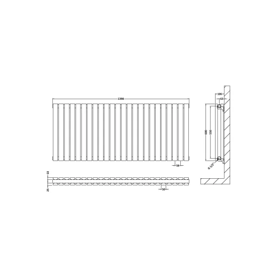 Sloane Horizontal Double Panel Radiator 600 x 1398mm - Satin White