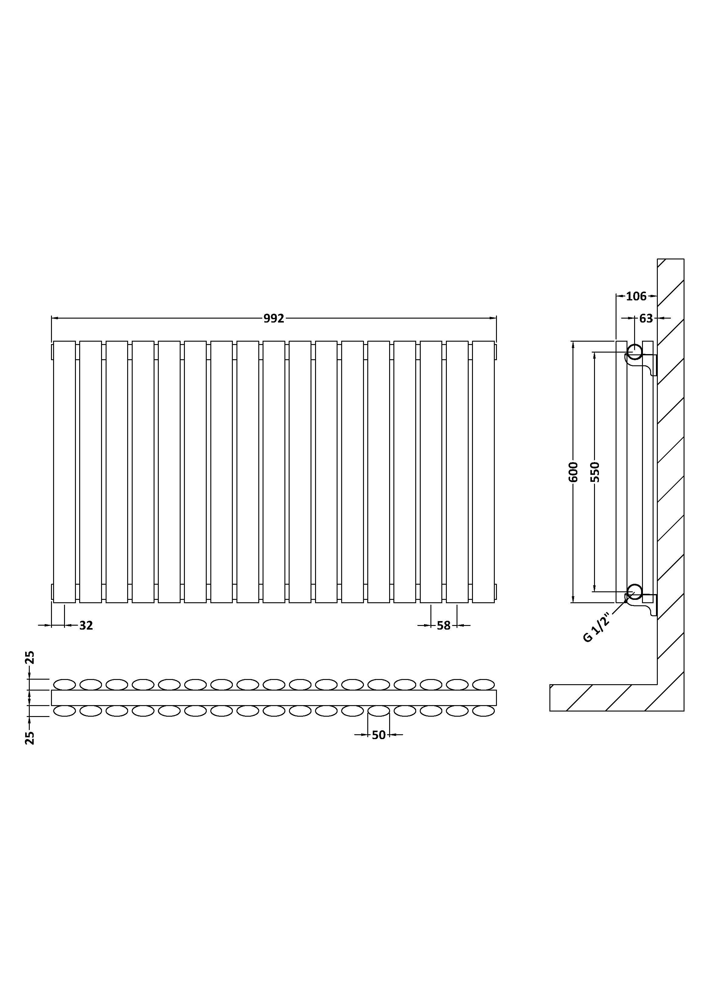 nuie Revive Horizontal Double Panel Radiator 600 x 992mm - Anthracite