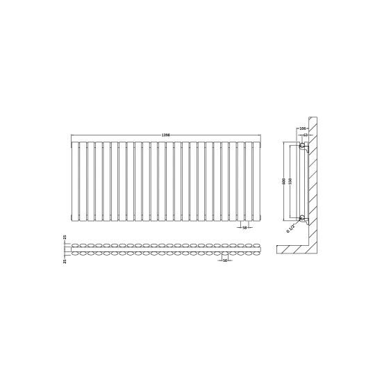 Synergy Shelley Horizontal Double Panel Radiator 600 x 1398mm - High Gloss White