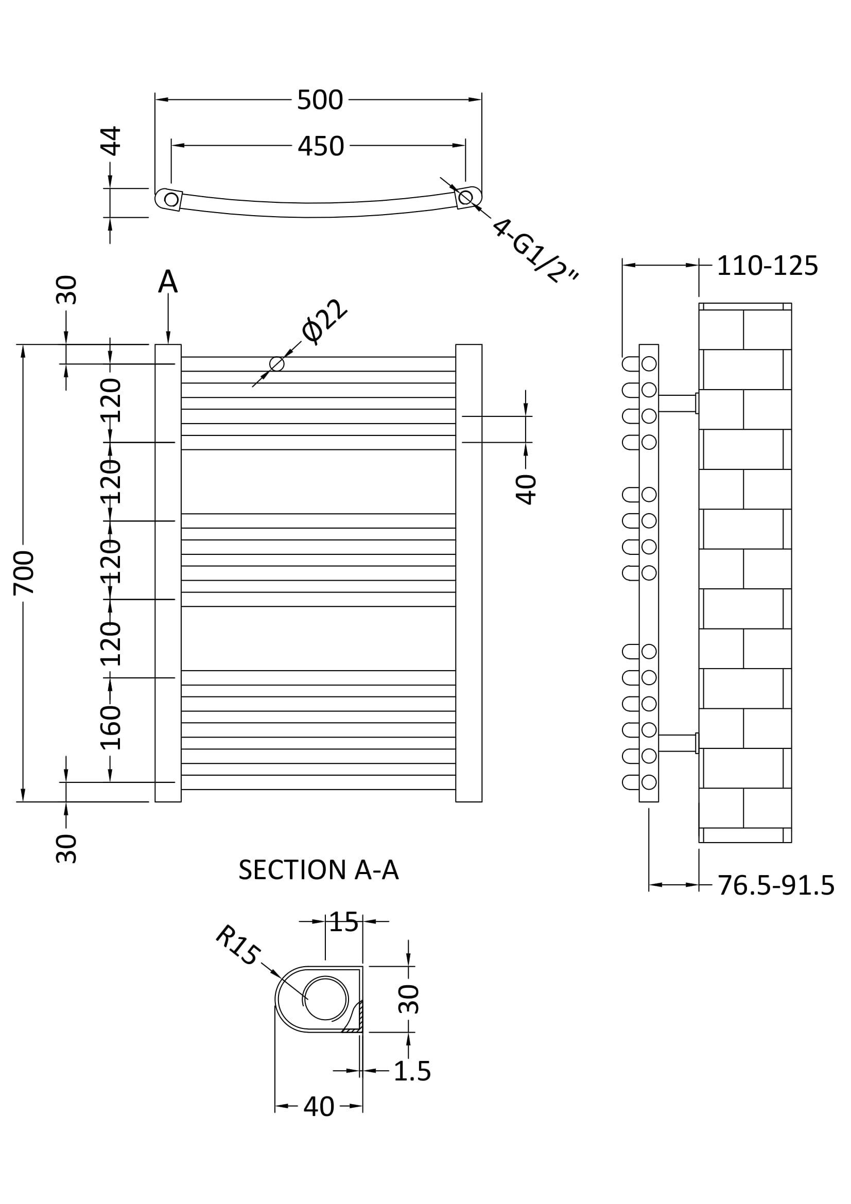 Straight Ladder Rail 500 x 700mm