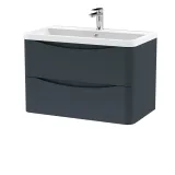 Nuie 800mm Soft Black Wall Hung 2 Drawer Vanity Unit Including Polymarble Basin